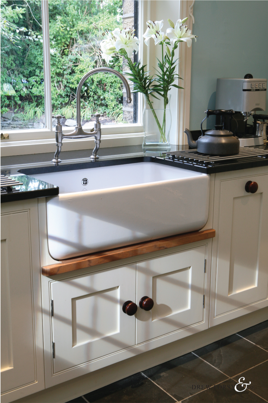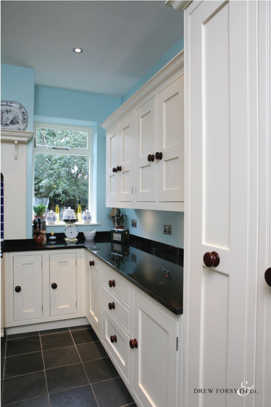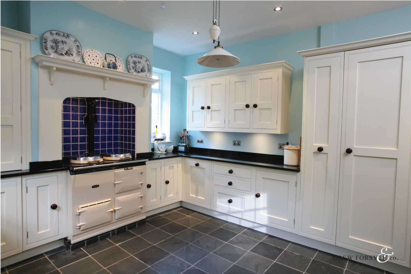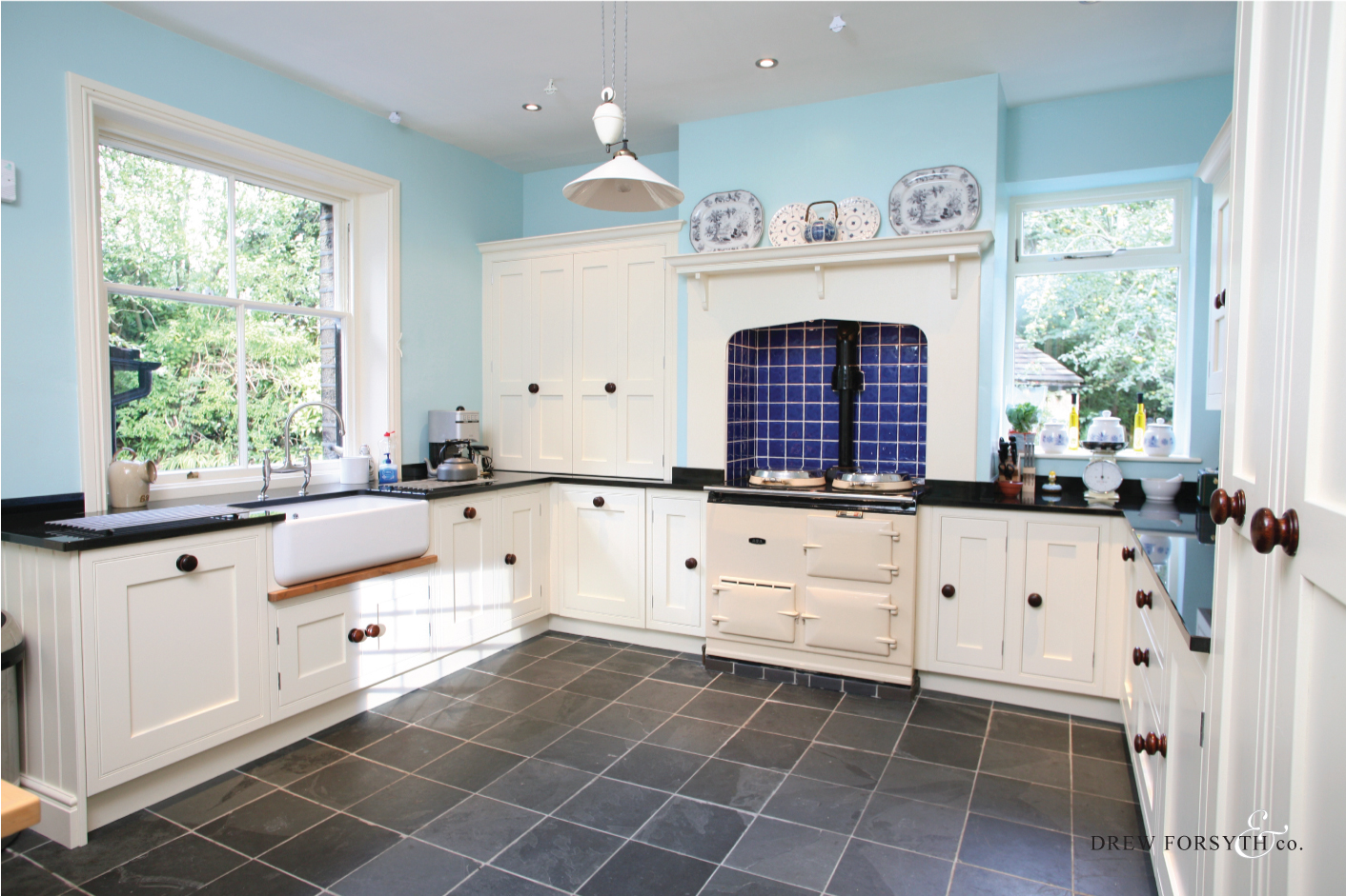 This kitchen provides a characterful charm to the home. With its painted cabinets against the light blue walls it is a great example of tranquil living.